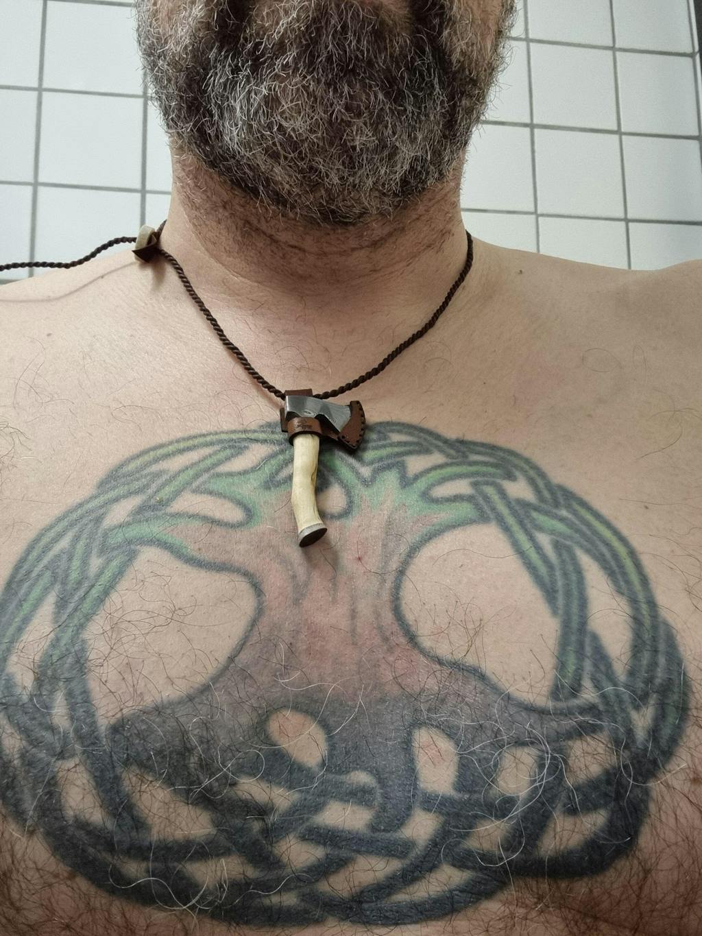 Formad efter våra eftertraktade Jaktyxor och döpt efter en av våra enastående knivmakare. Smyckesyxan har ett huvud av svenskt rostfritt damaskusstål, DS93X, från Damasteel®. Skaftet är tillverkat av masurbjörk med en älghornsbit i änden. Yxan sitter i ett handsytt eggskydd som hänger snyggt runt halsen med ett flätat läderhalsband av renskinn och en ände av renhorn.